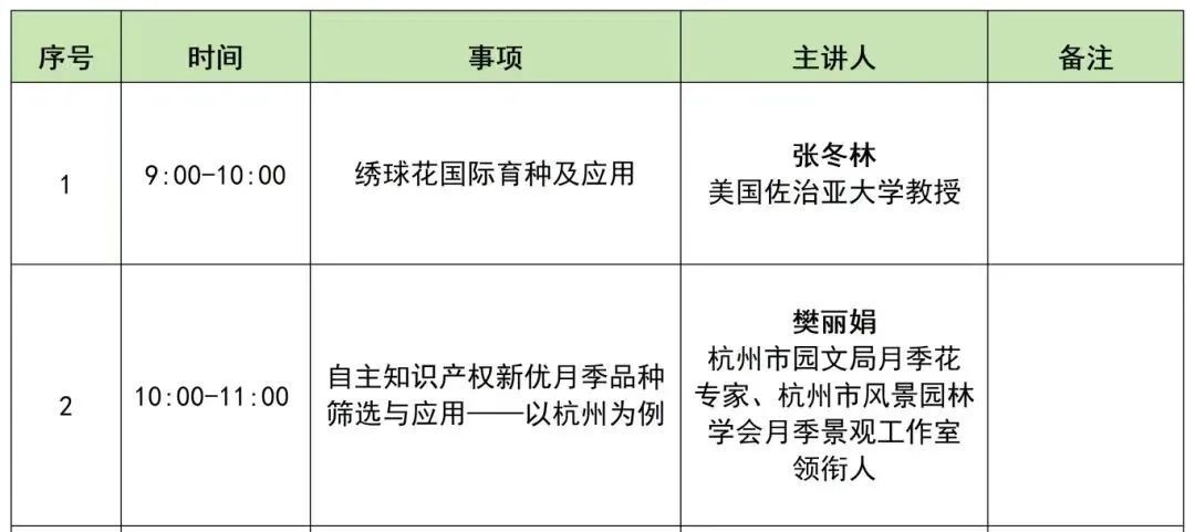 4月29日上午9:00~11:00,由上海市绿化管理指导站、上海市奉贤区绿化和市容管理局、上海市公园管理事务中心、上海滨江森林公园和上海市公共绿地建设事务中心主办的“绿博士大讲堂奉贤新城专场”将聚焦于本届花展主题花卉——绣球与月季,邀请美国佐治亚大学教授张冬林和杭州市园文局月季花专家、杭州市风景园林学会月季景观工作室领衔人樊丽娟带来精彩的讲座。