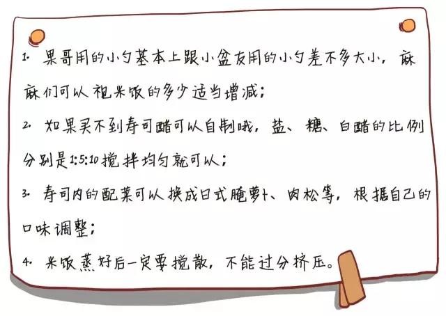 1):将米饭和2勺寿司醋拌匀,放凉备用