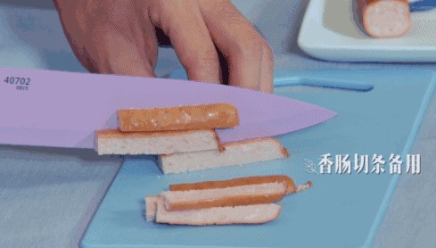 3):黄瓜、胡萝卜、火腿肠和鸡蛋都切成条状