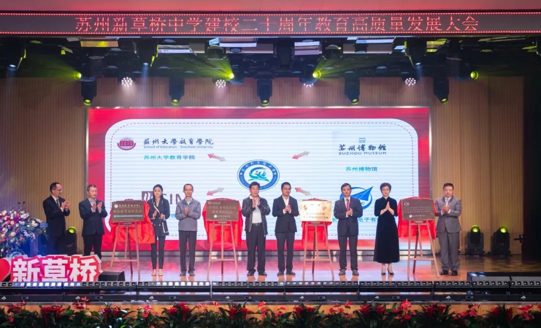 苏州新草桥中学成为苏州大学教育学院教育部“国培计划”骨干教师研修项目基地,新加坡管理学院的优质生源基地;苏州博物馆成为新草桥中学的中华优秀传统文化教育实践基地;苏州长风航空电子有限公司成为新草桥中学的科技教育实践基地。实现院校、校企之间的优势互补,共同开拓教育研究和教学实践的空间,不断探索学生综合素质培养、深化拓展教育合作,促进学校教育教学高质量有特色发展和人才培养。