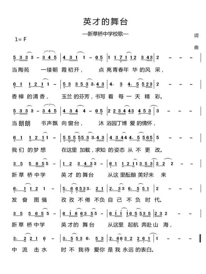 苏州新草桥中学校歌《英才的舞台》