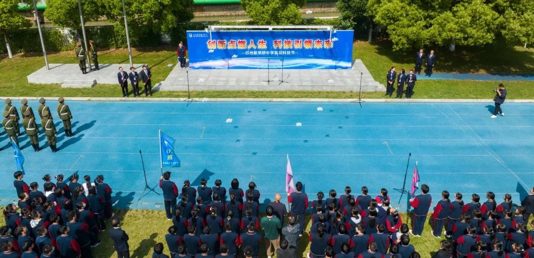 5月10日,伴随着无人机编队的精彩表演,“创新点燃人生,科技引领未来”苏州新草桥中学首届科技节开幕。
