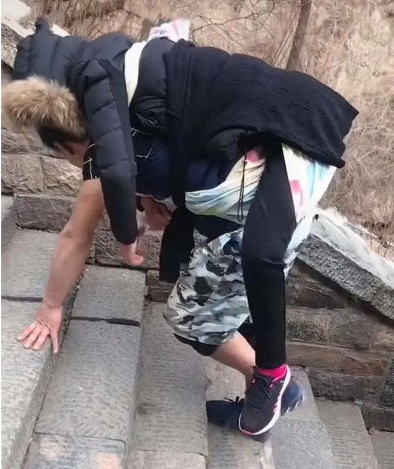 于是,在2017年3月9日,泰山的石阶上出现两个身影,张明荣背着孔燕从前一天晚上出发,用了整整十二个小时才终于抵达山顶。