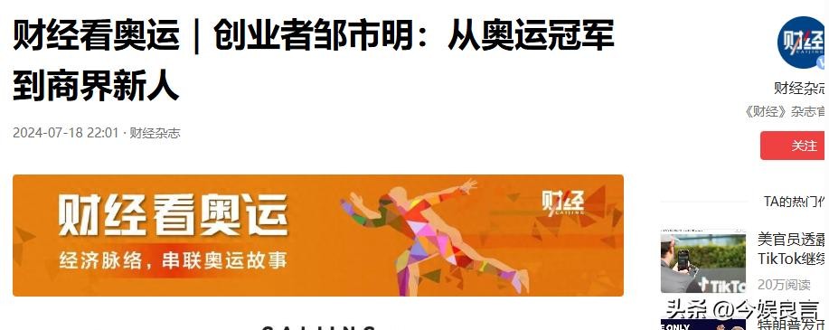信源①——2025-0——财经杂志——财经看奥运|创业者邹市明:从奥运冠军到商界新人