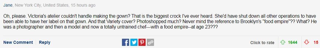 这话还是有点道理的,众所周知维多利亚不会放弃让她的亲友穿上她同名品牌的设计,她的很多朋友、家人,乃至她儿子罗密欧当时的女友Mia Regan在出席妮可拉和大布婚礼时,穿的都是她品牌的衣服。