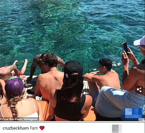贝克汉姆家最新的度假帖子是三儿子克鲁兹发的大合照,配文是“家”,还比了个心。