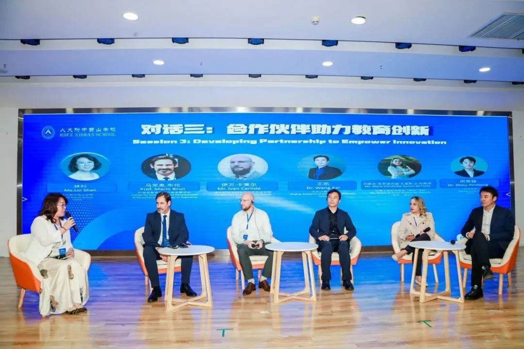 人大附中西山学校和人大附中石景山学校校长、书记刘彦在闭幕致辞中表示:“从北外到西山,三天的教育对话让我们聆听到来自不同国家专家们的主旨分享和对话,犹如一席精神大餐,一场知识盛宴,让我们收获良多,深受启发。西山一路走来,深耕十五年,是大家对西山的鼓励和加持,让我们越走越坚定。尽管未来有诸多不确定性,但未来已来,在数字时代的浪潮下,我们只有顺应潮流,一起向未来。我们愿意与更多的教育同仁一起,携手并肩,为基础教育的发展贡献西山方案、西山实践和西山智慧。”