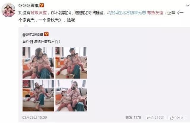 在某重大纪念日时,范玮琪就因晒娃遭批,当天一早其他明星都是转发官媒的相关报道,但范玮琪却是晒出两个儿子的背影照,许多网友批评她这时候晒娃不合适,那时她还道歉了,可后来的重大节日,范玮琪依旧如此。