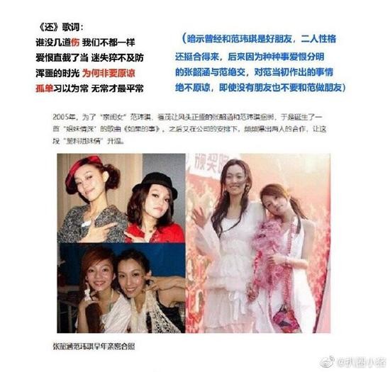 说到另一位主角,范玮琪与张韶涵从姐妹花变到当今形同陌路,爱恨纠葛究竟变成怎样?当事人从未直白坦陈,陈年旧料于是被加新剧情,多年来引发不少外界的添油加醋。基本上每次两人的名字放在一起。