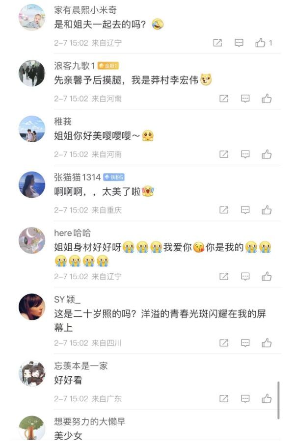 许多网友们看到照片也纷纷在评论区写道:“是和姐夫一起去的吗”、“啊啊啊,太美了啊”、“姐姐身材好好呀”、“美少女”、“这是二十岁照的吗?洋溢的青春光斑闪耀在我的屏幕上”!