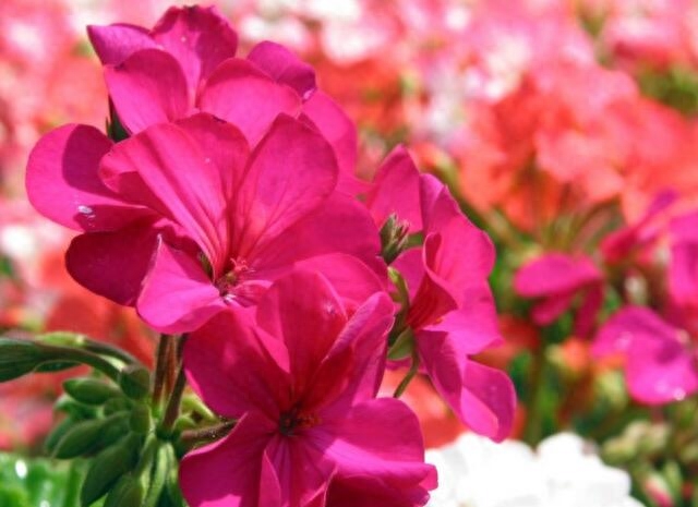 种植方法:天竺葵喜好有充足日光的东面或南面窗台,秋冬在全日、半日照的地点生长良好,也适合当作花坛植物。放在室内者则要有散射光,否则落花、落叶很快。使用培养土或是疏松富含有机质的砂质壤土为佳。加少量骨粉和缓释肥。每年应换盆一次,更换新的培养土,以利生长开花。平时浇水不需过多。否则会引起叶片变黄、植株生长不良,不能形成健壮的花蕾。一般应在叶尖打蔫时再浇,浇必浇透。6月下旬至8月上旬,气候炎热,天竺葵处于半休眠状态,应停止施肥,控制浇水。高温、阳光直晒和雨后盆内积水,都会影响天竺葵休眠,甚至烂根死亡。因此,休眠期应将其放在背阴的阳台上、窗台上,或庭院避光而不受雨淋的地方。