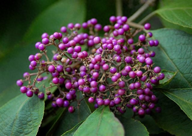 驱蚊功效:《本草拾遗》上介绍,紫珠解诸毒物,痈疽,喉痹,毒肿,下痿,蛇虺虫螫,狂犬毒,并具有较好的驱蚊功效。