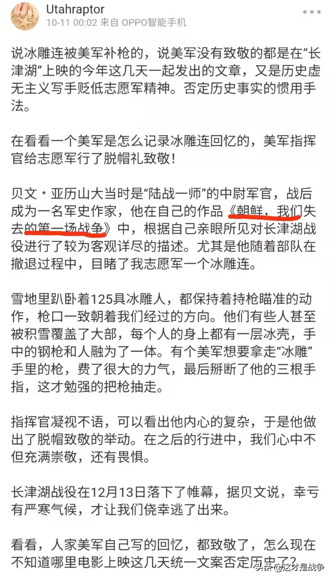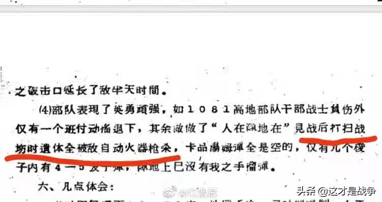 是有个叫江紫辰的大V贴了60师的资料,里面有一段说打扫战场时发现战士们的遗体全被敌自动火器枪杀。分别见上下图。