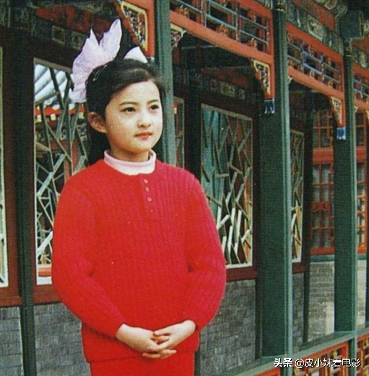 当时同在北京拍摄《哑妻》的刘雪华等人跑去悄悄看她,大家一边悄悄看一边感叹,这是哪里找来的小孩儿,漂亮得像洋娃娃一样。