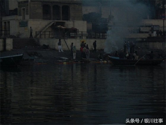 恒河边上的露天火葬场,十几米外就有人在沐浴