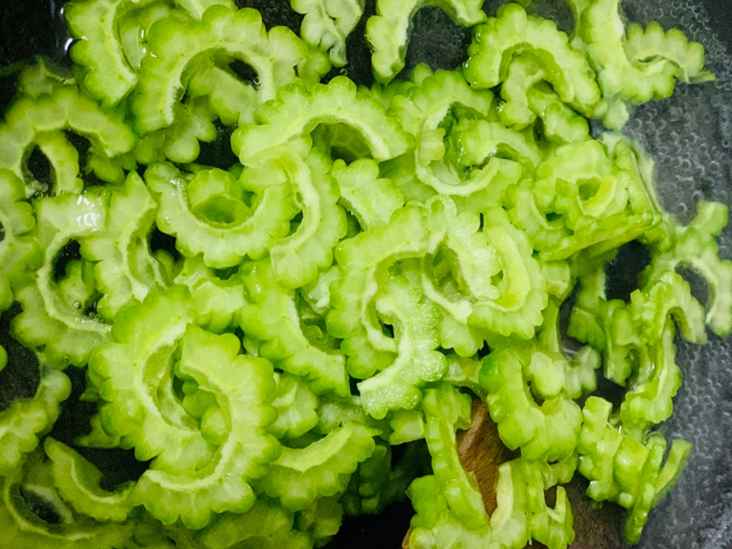1、苦瓜内部的白瓤,是苦味的来源之一,可以用勺子刮干净,让苦味降到最低。