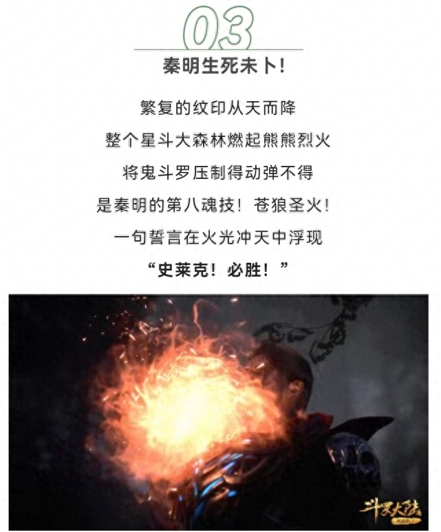从天而降的火狼张开血盆大口,仿佛这就是秦明最后的怒吼。伴随着第八魂技苍狼圣火的燃尽,秦明是不是也因此付出了生命呢?这其实很难说,还是要讲个“活要见人,死要见尸”,秦明倘若真的这么殒命,就太可惜了。可是根据动画的画面来看,的确是悲剧降临,仿佛一切都不可逆转了。