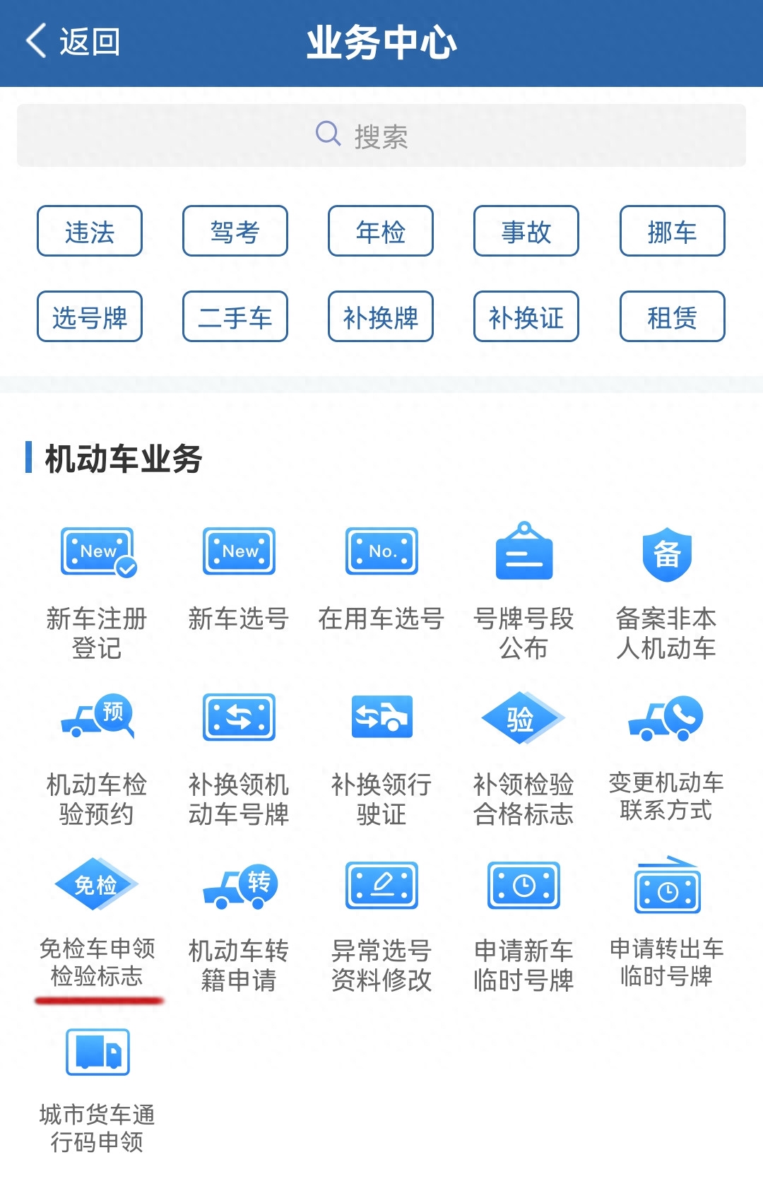 打开交管12123,进入“业务中心”->“免检车申领检验标志”里面根据提示一步步办理。