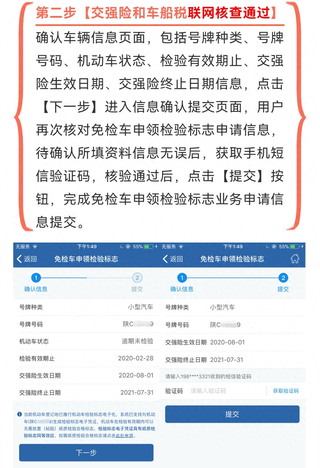 第二步,确认交强险及车船税缴纳情况