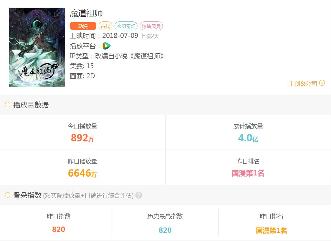 7月9日12:00,动画《魔道祖师》在腾讯视频独播,从开播至今收视一路高歌猛进,小鹿从这部ip大作宣布动画化的时候就异常期待了,可以说《魔道》的观感是非常棒的,已经有很多路转粉的小伙伴们留言开启了n刷模式。