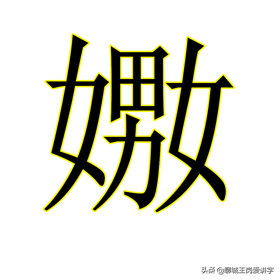 "嫐",两个女生争一个男生,多了几分妖娆和妩媚。