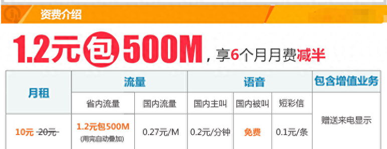 具体来说,针对中国联通这款名为“沃视频卡”的手机套餐,原本月租为20元,但是,中国联通为了吸引新用户的加入,表示前6个月月费减半,也即从20元降低到了10元。在移动、电信、联通这三大运营商推出的手机套餐中,10元的月租是比较少见的,也即可以纳入到超低月租的范围内。在10元月租的基础上,该套餐1.2元包500MB省内流量,用完自动叠加,流量当天有效,自动清零,不可以结转到次日使用。