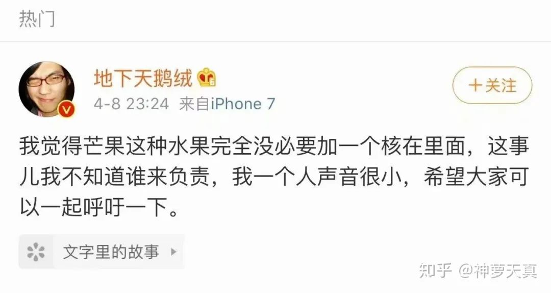 ▲ 所以,芒果塞核工人是不是该下岗了?图/新浪微博@地下天鹅绒