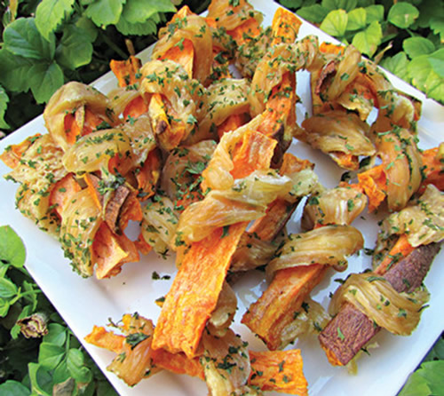 红薯很容易可以切成薄片。如果我们选择的红薯不是有机红薯,那么最好把皮去掉;如果是有机红薯,可以保留表皮,其中富含大量的纤维和钾。