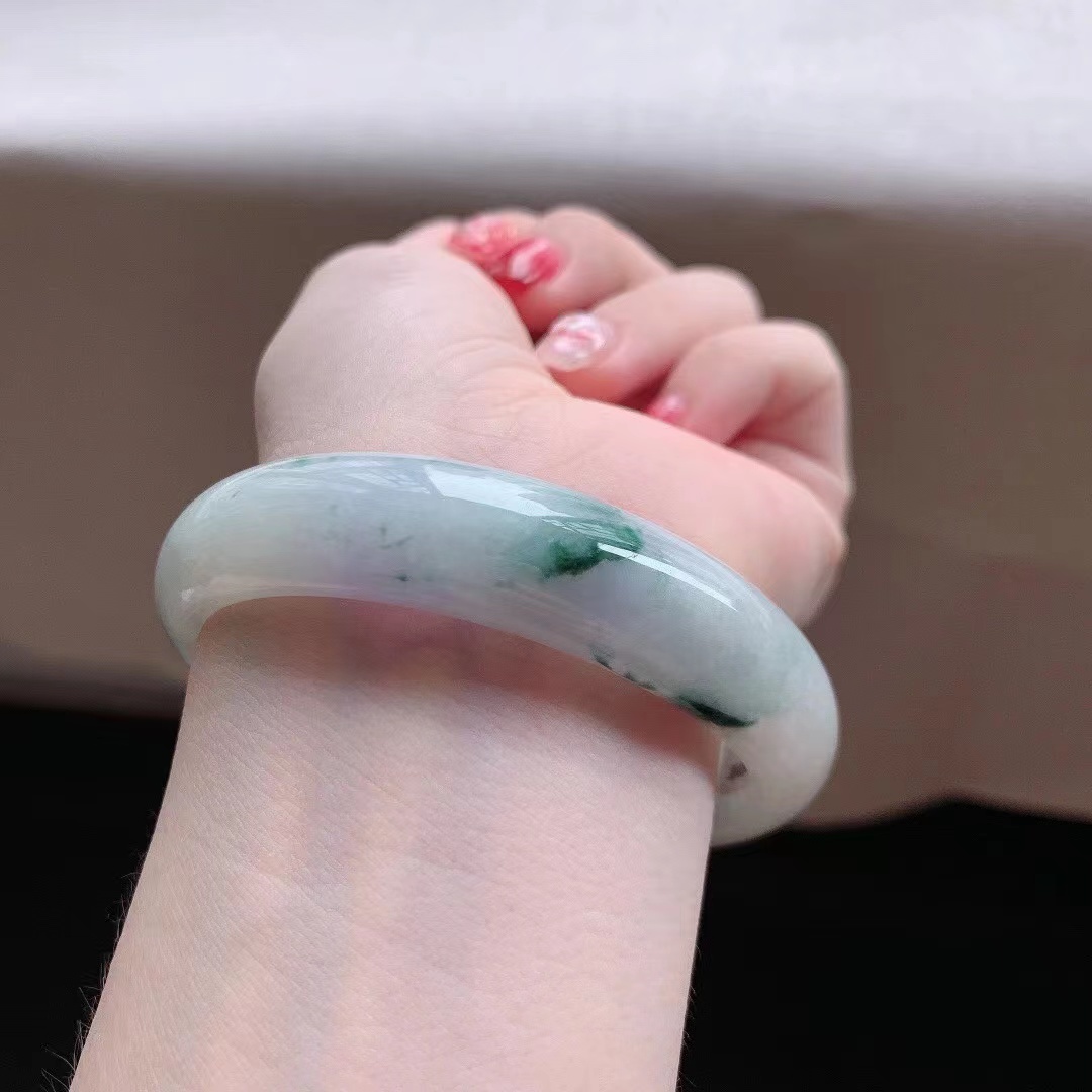 翡翠手镯,才是腕间最浪漫的风情。所以当我们选择翡翠手镯的时候,一定要更加地认真谨慎。选择透光度比较强,色彩感特别细腻的手镯,自然会更加的精致美观。而且选择翡翠手镯的时候,一定要选择合适的尺码。尺码太小戴不下去就不说了,尺码太大戴在手腕上恍恍荡荡的,也是特别影响美感的。