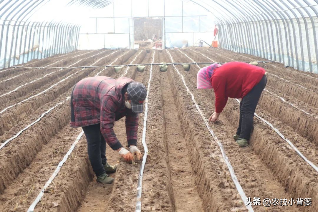 (七)草莓移栽定植的理苗技巧。草莓苗在栽种时,为了便于幼苗成活和方便后期管理期间,农技建议大家栽种时尽量把同时要注意把幼苗叶片全部均匀铺展开、弓背全部朝向沟道、花序全部朝向沟边。