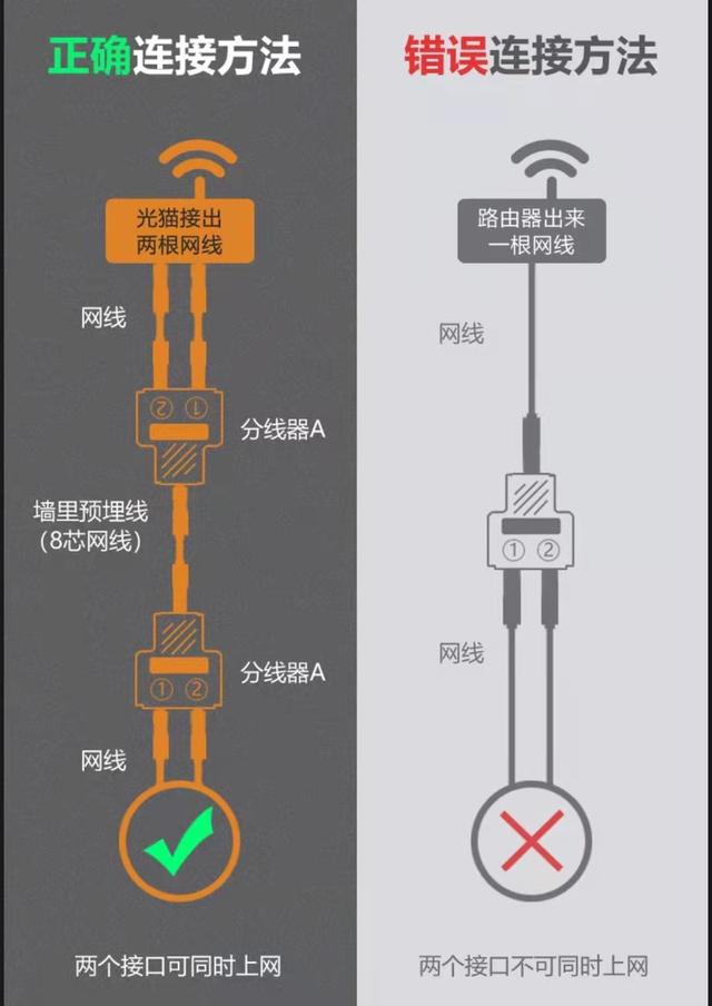 第二种方法相比于第一种方法更胜一筹,因为,第二种方法不但不用破坏家里的网络面板,而且网络信号更加稳定。除此之外,这种网络分接头,还可以通过一根预埋网线实现路由器和电脑、交换机和路由器同时联网,而且在光猫设备只有一个网口的情况下,利用路由器的分流信号实现家里安装多台路由器,达到家里无线网络全覆盖的目的。希望可以帮助到大家,谢谢!