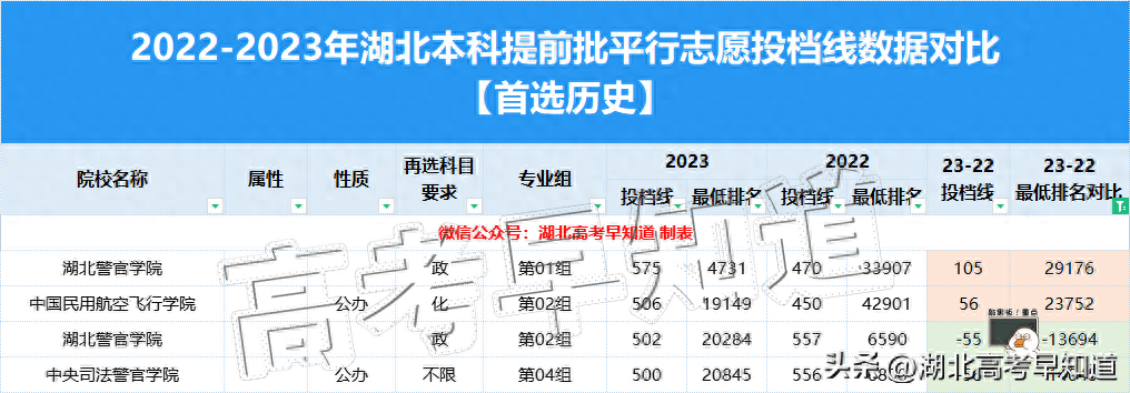 投档线上涨最多的是湖北警官学院的“第01组”,上涨了105分,排名也对应的上涨了29176。