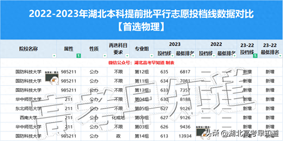 2023湖北【首选物理】本科提前批平行志愿模块比去年新增了26个专业组!