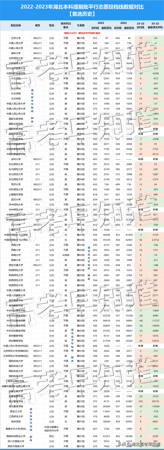 值得注意的是:985/211院校2023年在本科提前批投档线全部上涨!上涨最明显的是中南财经政法大学的“第04组”,上涨了50分,排名也对应的上涨了15621。