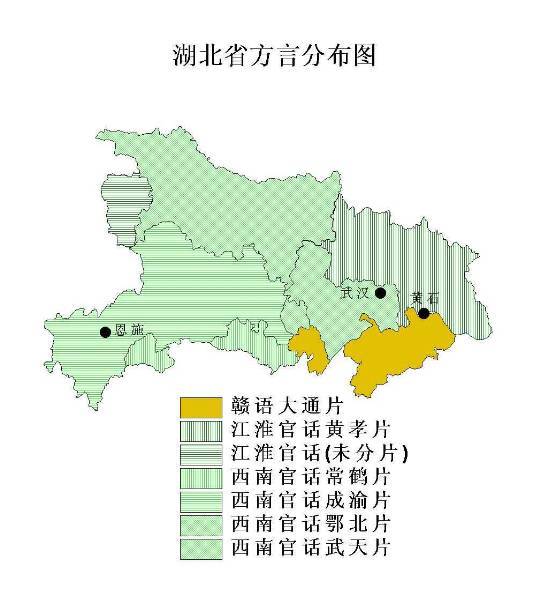 湖北方言概况 湖北方言分布图