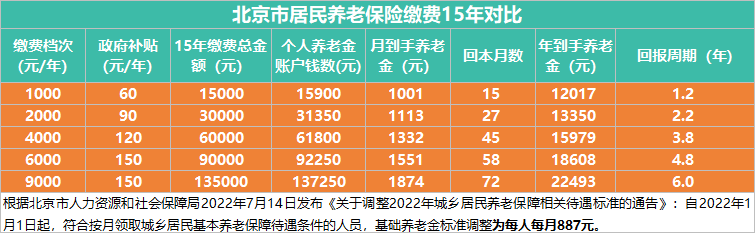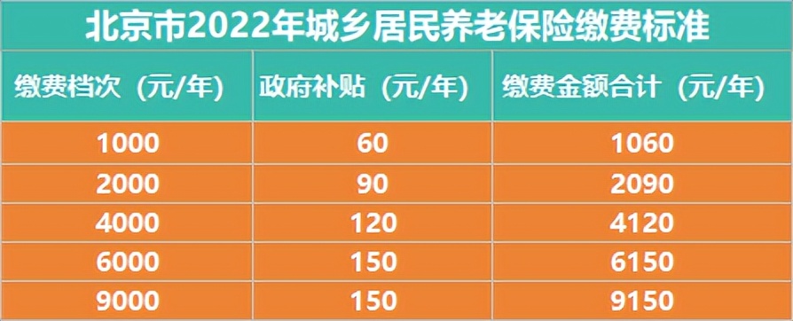 北京2022年城乡居民基本养老保险缴费标准