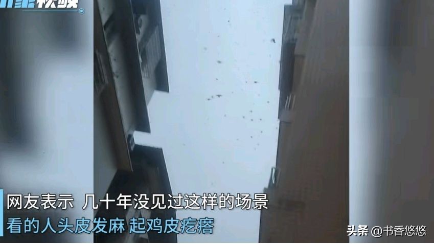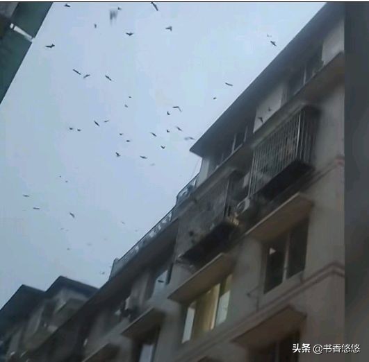 在灰暗的天幕下,天空中出现了密密匝匝的小黑点,时而高飞,时而低伏,在楼房上空的位置来回盘旋,小黑点数量之多,让居民们惊讶不已,感觉黑压压的一片有些恐怖。