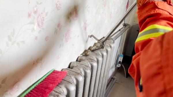 消防员寻找了2分钟后,才在暖气片上找到蛇并将其抓捕。根据蛇的颜色和头形,消防员判断,这应该是条无毒的小蛇,随后选择到安全地点将其放生。