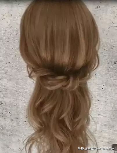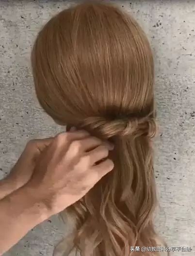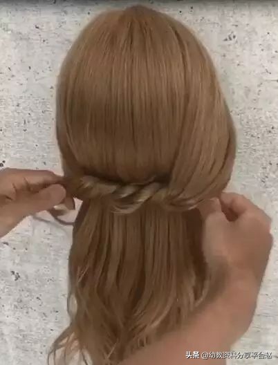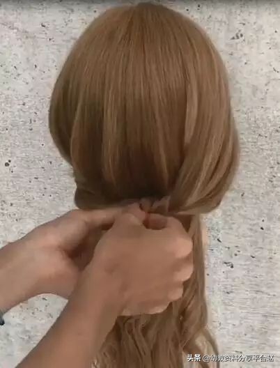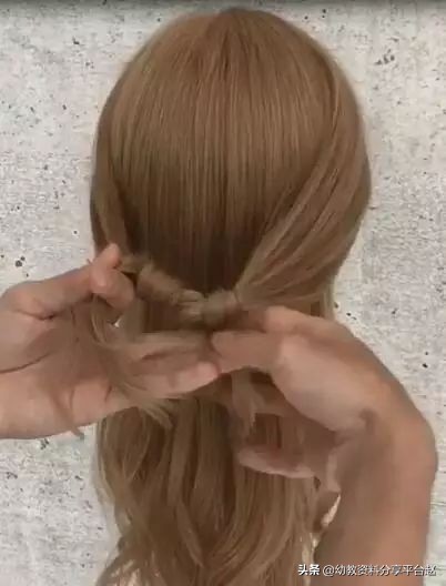 Step 2:从半扎发的下方左右两边各取一小束头发在后方绑在一起。