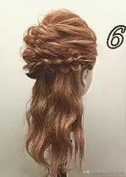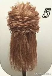Step 3:将发辫拢到脑后,然后将发辫在脑后卷成一朵花朵的形状,卷好后用钢丝夹将花朵固定好。