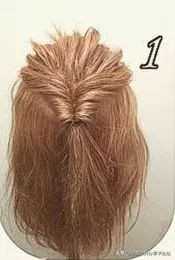 Step 1:取头顶部分的头发在脑后扎成一个松松的半扎发,然后将半扎发的发尾向上翻转从扎好的发束中间穿过。