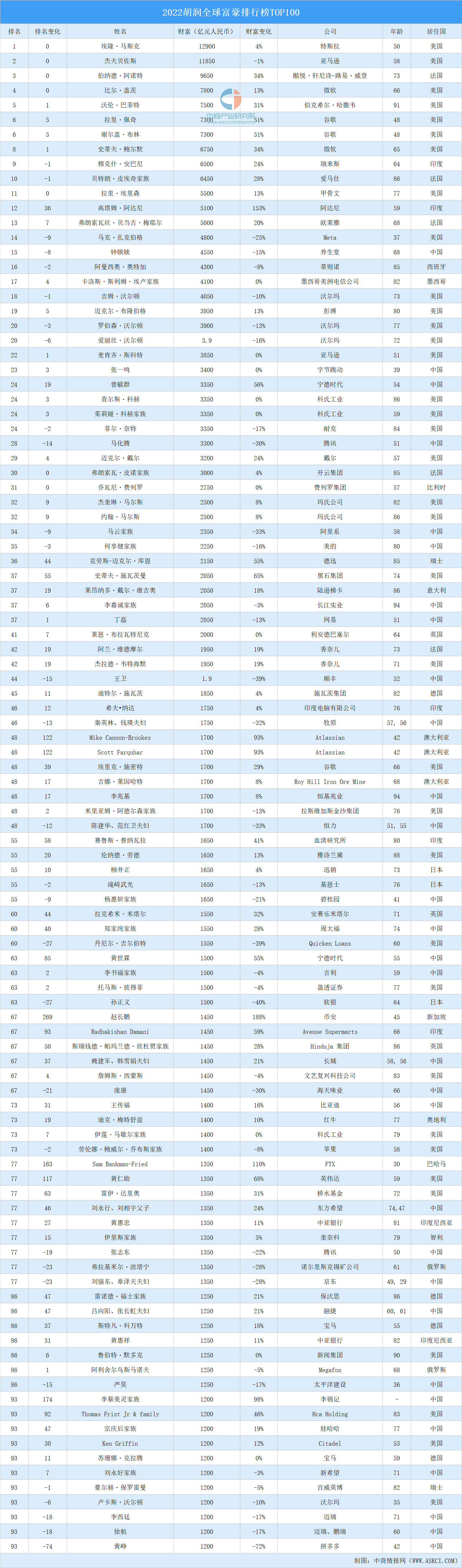 中商情报网讯:近日,胡润研究院发布《2022胡润
