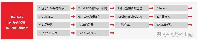 第八阶段 分布式亿级 高并发电商项目 1.基于SOA架构介绍 2.VSFTPD和Nginx和商品新增 3.商品规格参数管理 4.Jsonp 5.CMS模块 6.广告位数据缓存 7.SolrJ和SolrCloud 8.商品搜索 9.商品详情 10.单点登录 11.购物车 12.订单系统 13.分库和分表 14.分布式部署