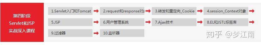 第四阶段 Servlet和JSP 实战深入课程 1.Servlet入门和Tomcat 2.request和response对象 3.转发和重定向_Cookie 4.session_Context对象 5.JSP 6.用户管理系统 7.Ajax技术 8.EL和JSTL标签库 9.过滤器 10.监听器