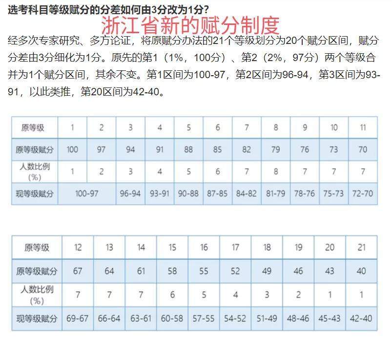 但是,目前很多省份的赋分制也有弊端,比如分差过大,三分一个等级,卷面分实际上只差一分,但刚好卡在那个等级两头,两者赋分后就差了三分。因此,很多省份开始改革。浙江从2022年一月开始,赋分制由21个赋分区间改为20个,三分的赋分分差改为一分,这样就更公平了。期待北京等其他省市也早日改成这种赋分方式。