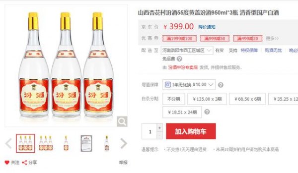 950ml汾酒,55度,比较小众产品,主打投资收藏、四人共饮,目前市场销量不大。