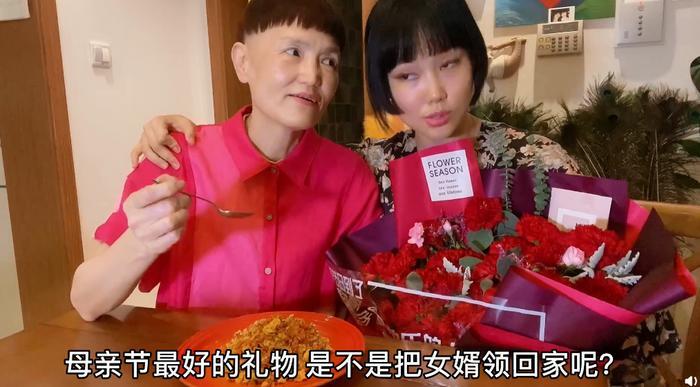 好不好吃不知道,心意总是到了。本来就是个普通视频,结果她结尾冷不丁又来了一句:“母亲节最好的礼物,是不是把女婿领回家呢?”