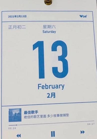 许嵩自己做的2021年日历,2月13日的标注是最佳歌手,众所周知,这个日子是黄龄的生日,嗑到的朋友已经开始狂欢了。