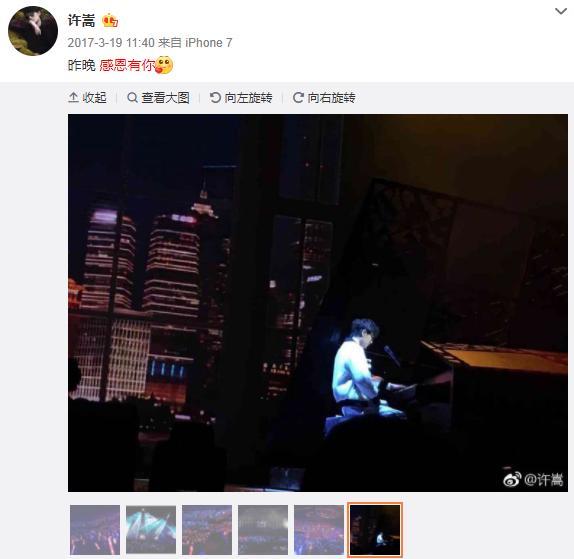 直到17年许嵩开演唱会,第一场就邀请了黄龄,虽然他发微博没有提及黄龄的名字,但“感恩有你”这四个字又让不少cp粉蠢蠢欲动。