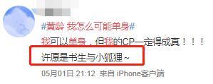 黄龄自曝有男朋友的时候,就有网友在许愿是书生与小狐狸,张口就是老瓜友了。
